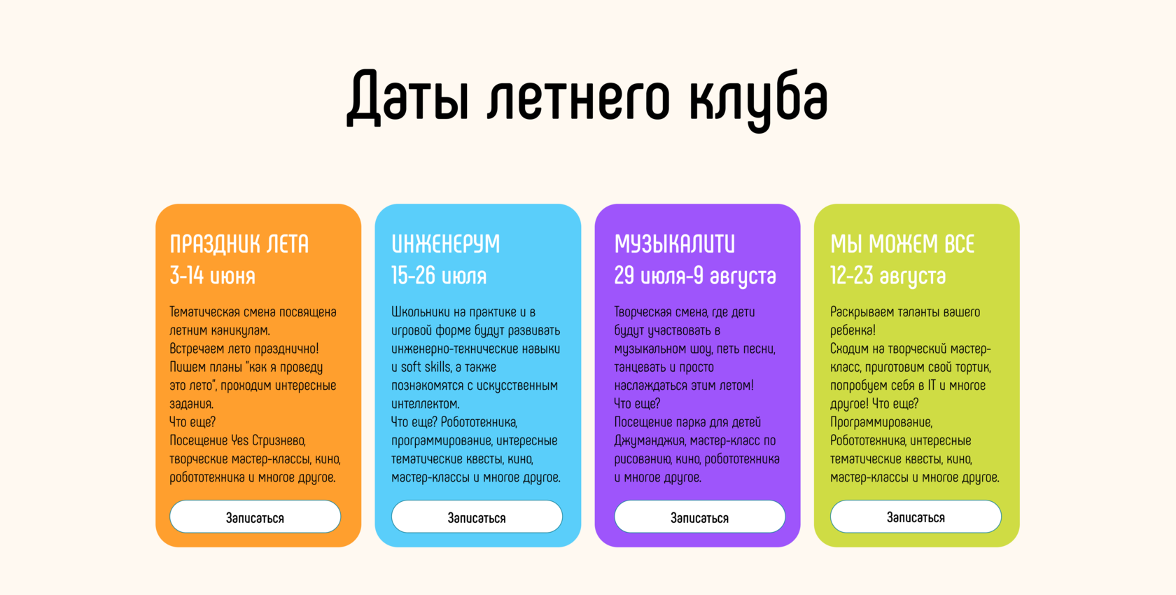 Каждый день у нас стоят: либо выездные мероприятия, либо мастер-классы, либо спортивные игры.